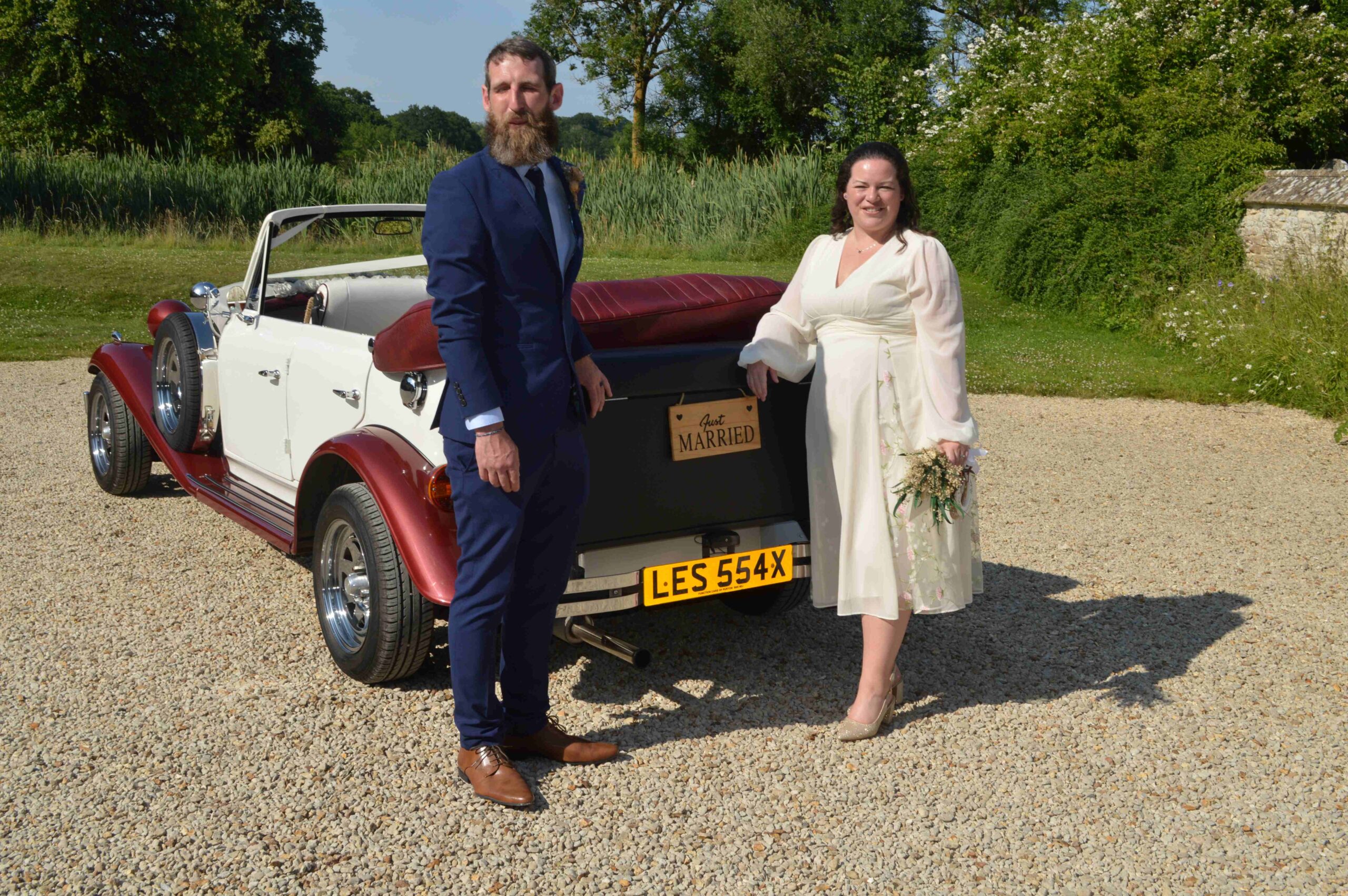 Laura and James booked our 1930’s style Beauford convertible for their wedding transport which had bridal white ribbon.
