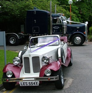 Pictured below is our Beauford at the Swindon Register Office with the hood down, after the rain had stopped.